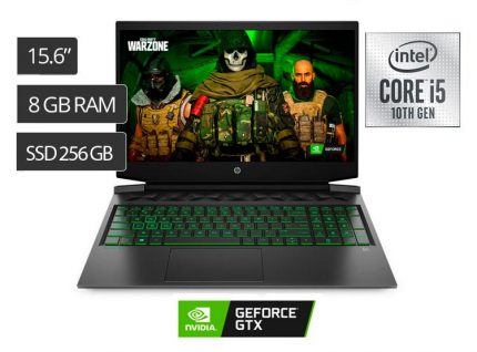 LAPTOP HP 15-DK1056WM 15.6″ FHD IPS, Intel Core i5-10300H 2.5 / 4.5GHz, 8GB DDR4 256GB PCIe NVMe M.2 SSD, Video NVIDIA GeForce GTX 1650 4GB GDDR6, LAN GbE , Lector de tarjetas SD multiformato Incluye Sistema Operativo Windows 10 Home 64-Bits.